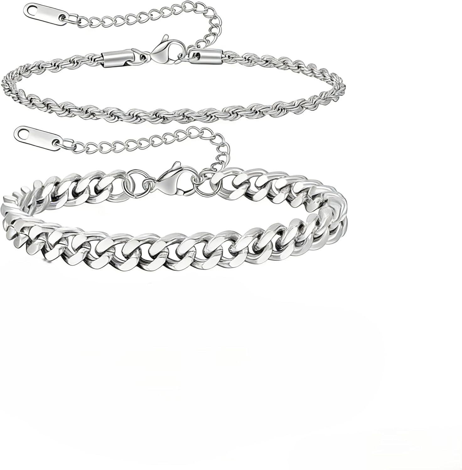 3Pcs Stainless Steel Mens Bracelet,Adjustable Sturdy Silver Cuban Chain Bracelet Set for Men