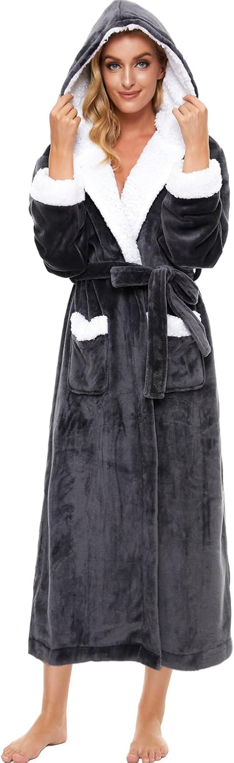 iniber Plush Robes for Women, Womens Robe Long, Fuzzy Fluffy Soft Warm Fleece Hooded Bathrobe