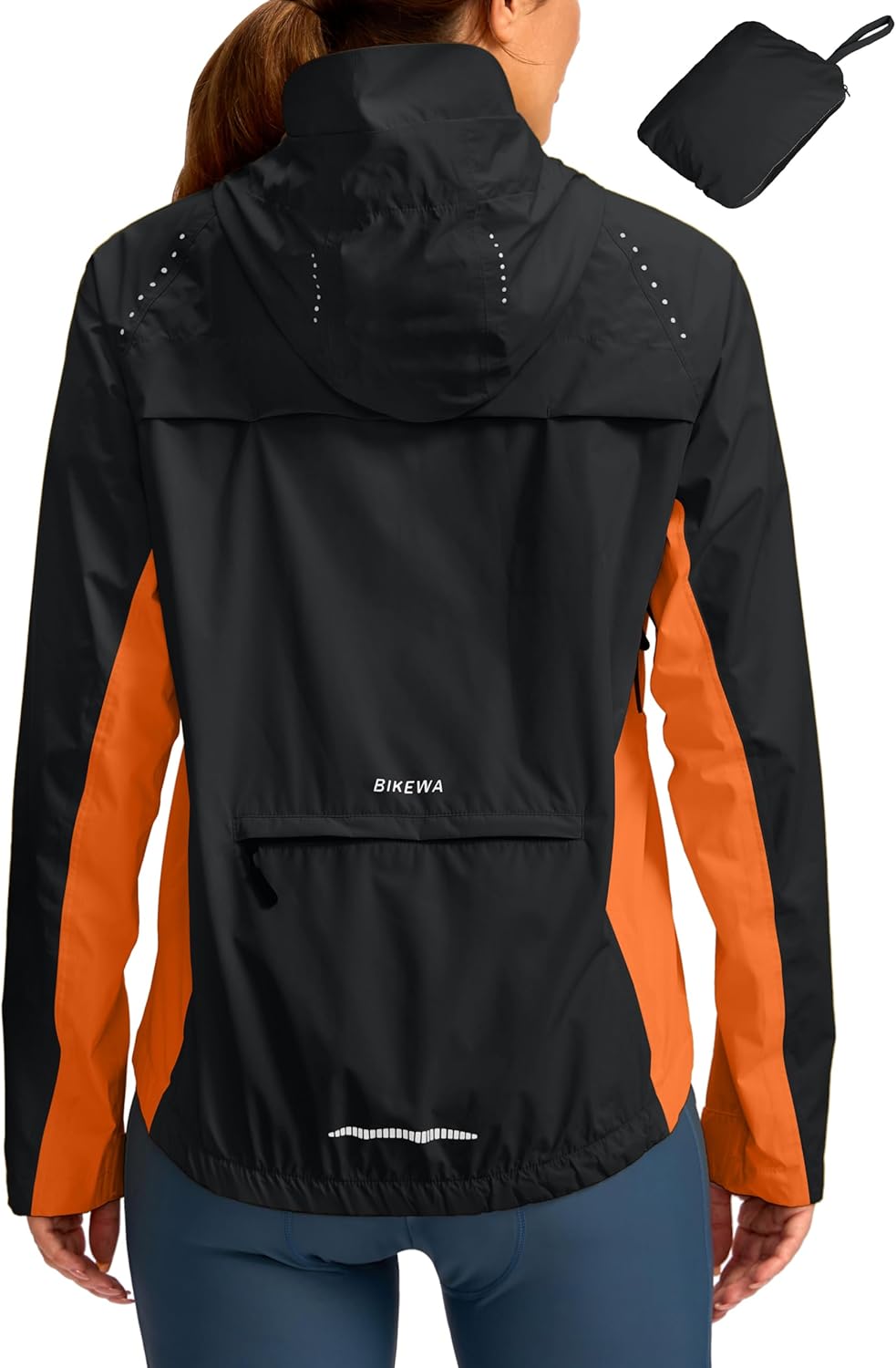 Bikewa Women's Cycling Rain Jackets Waterproof Windbreaker Lightweight Running Windproof Reflective Jacket Packable Hooded