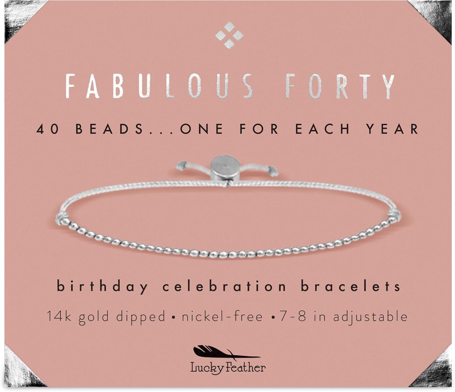 Lucky Feather Gifts for 40 Year Old Woman | Cute 14k Gold Dipped Beads Bracelet | Fabulous Forty Milestone Bracelet | gift ideas, for women 40s | Adjustable 7"- 8" Cord | 40th Birthday Gifts Women