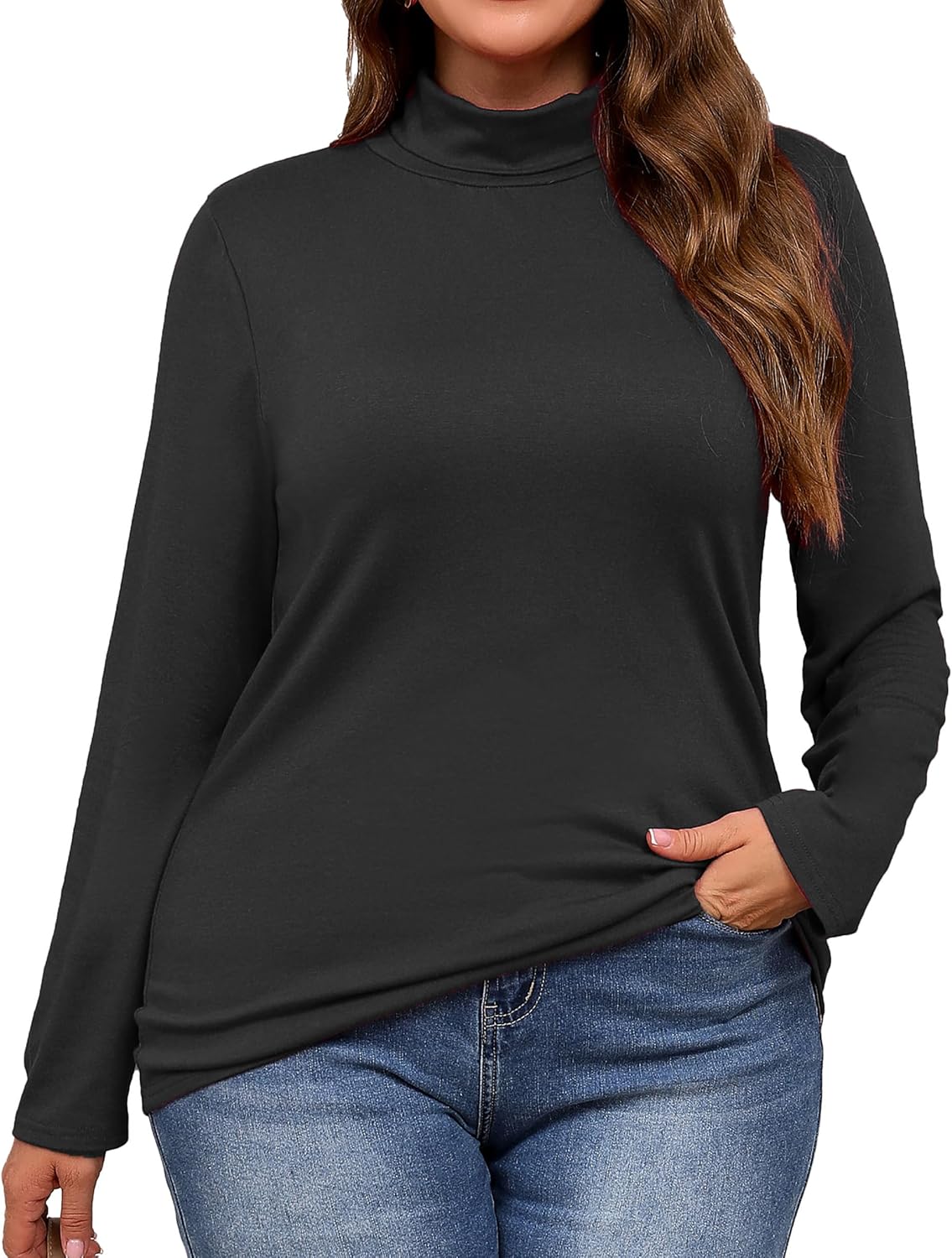 Plus Size Turtleneck Shirt Women Long Sleeve Slim Fit Mock Neck Bodycon Tops