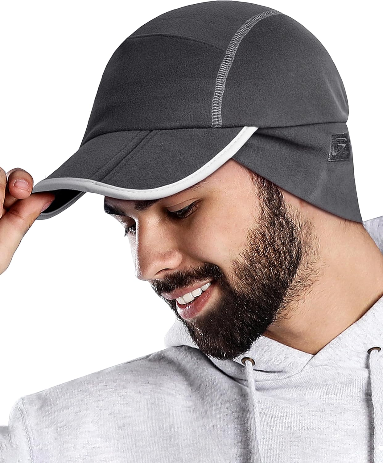 GADIEMKENSD Fleece Ball Cap with Drop Down Ear Warmer, Foldable Brim, Reflective Winter Run Hat Unisex