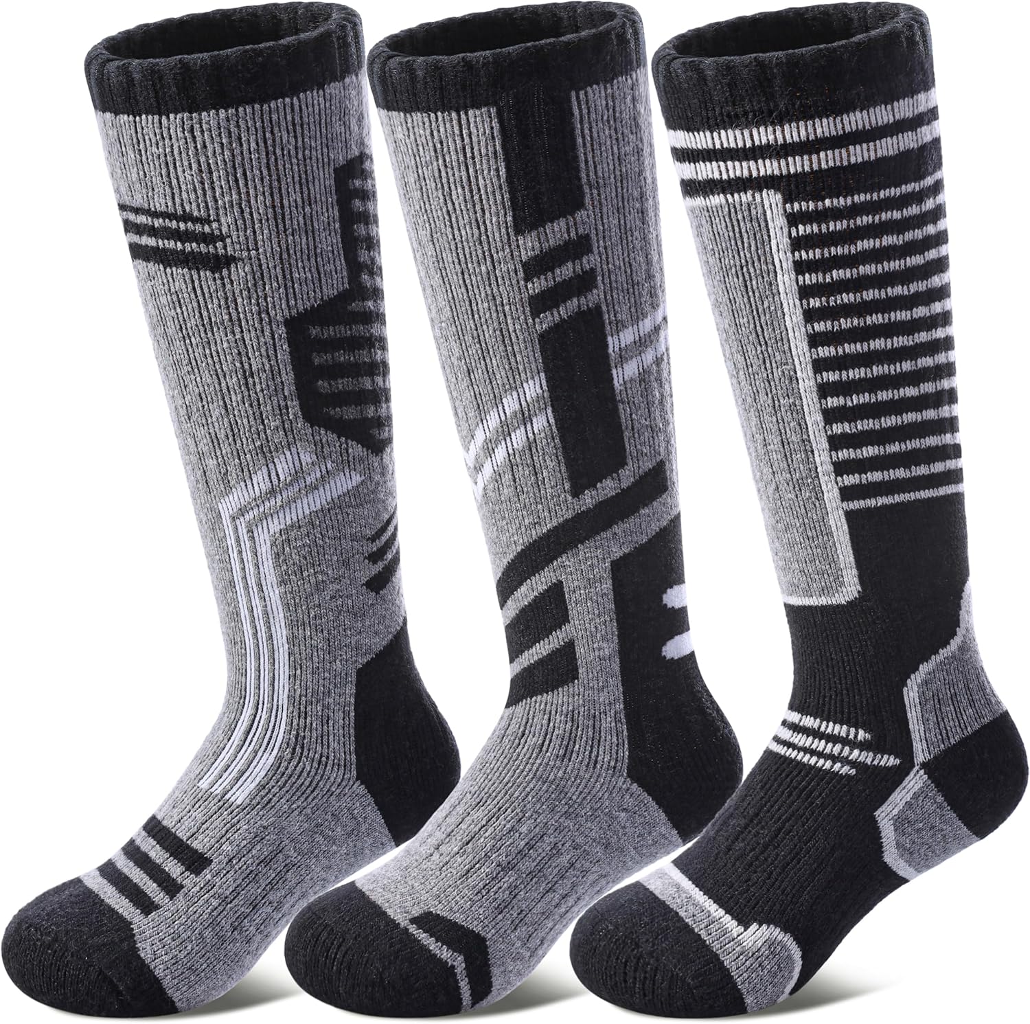 Kids Merino Wool Ski Socks Boys Girls Thermal Winter Warm Thick Cozy Socks for Skiing Snowboarding 3 Pairs