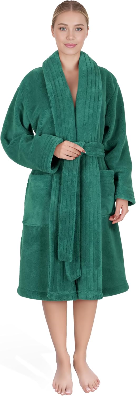 American Soft Linen Women’s Fleece Bathrobe Luxury Soft, Plush Robe for Women Cozy Spa Quality Adult Bathroom Lounge Robe
