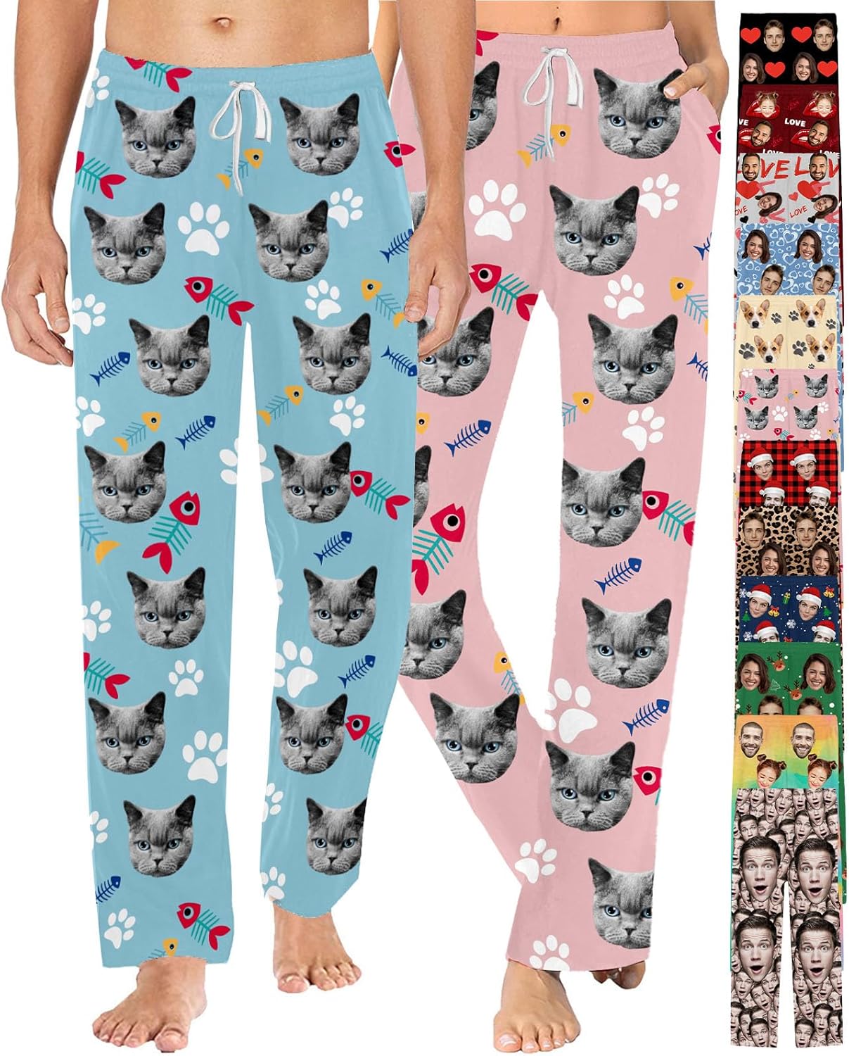 Custom Face Pajama Pants with Photo for Men Women Personalized Pj Bottoms with Pictures Customized Christmas Gifts