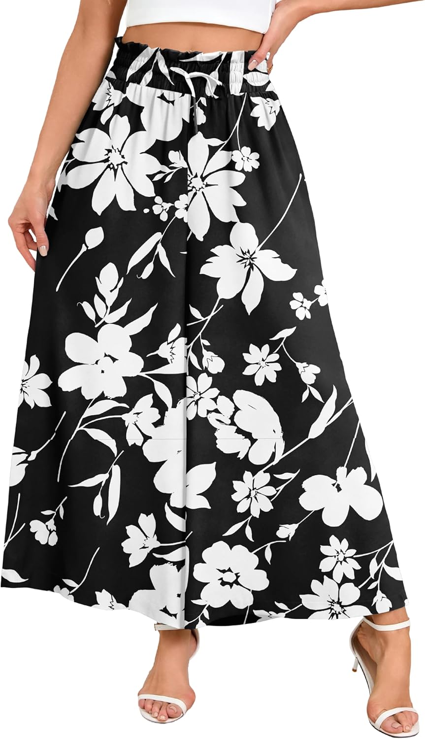 WeciBor Women's Boho Floral Palazzo Wide Leg Pants with Pockets Loose Flowy Casual Beach Vacation Outfits
