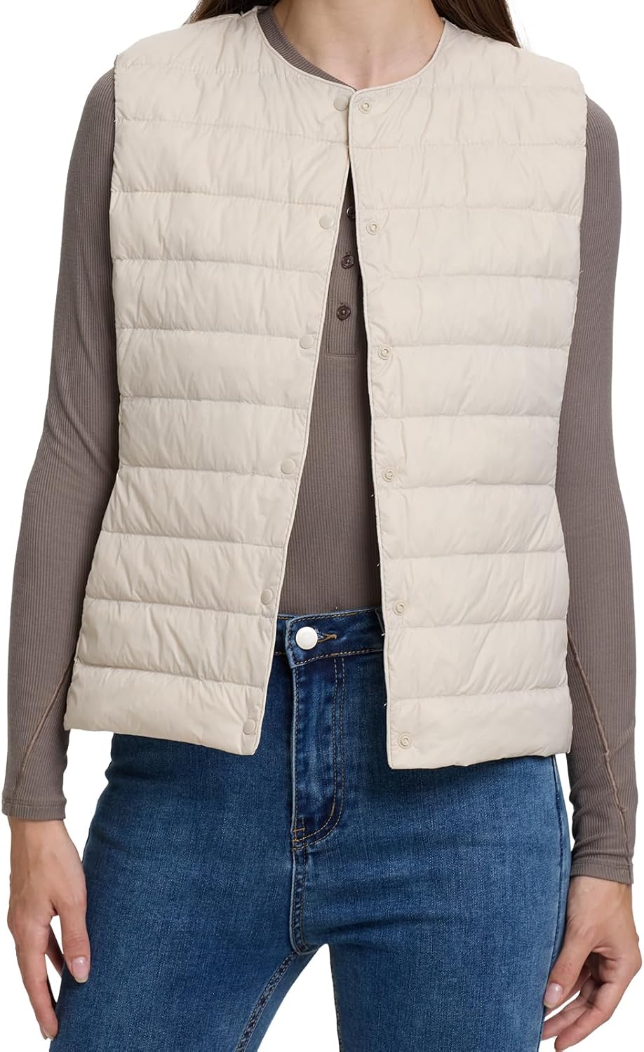 Women's Quilted Lightwight Puffer Vest, Foldable Collarless Down Vests with Storage Bag, Outwear Vests with Pocket
