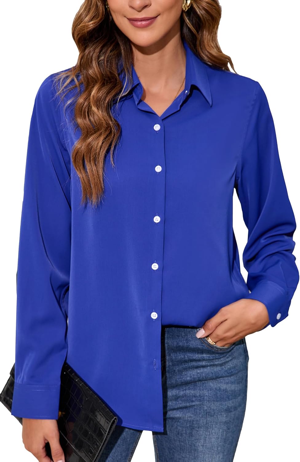 Dress Shirts for Women Long Sleeve Button Down Shirt Wrinkle Free Regular Fit Formal Work CollaGrey Blouses Tops