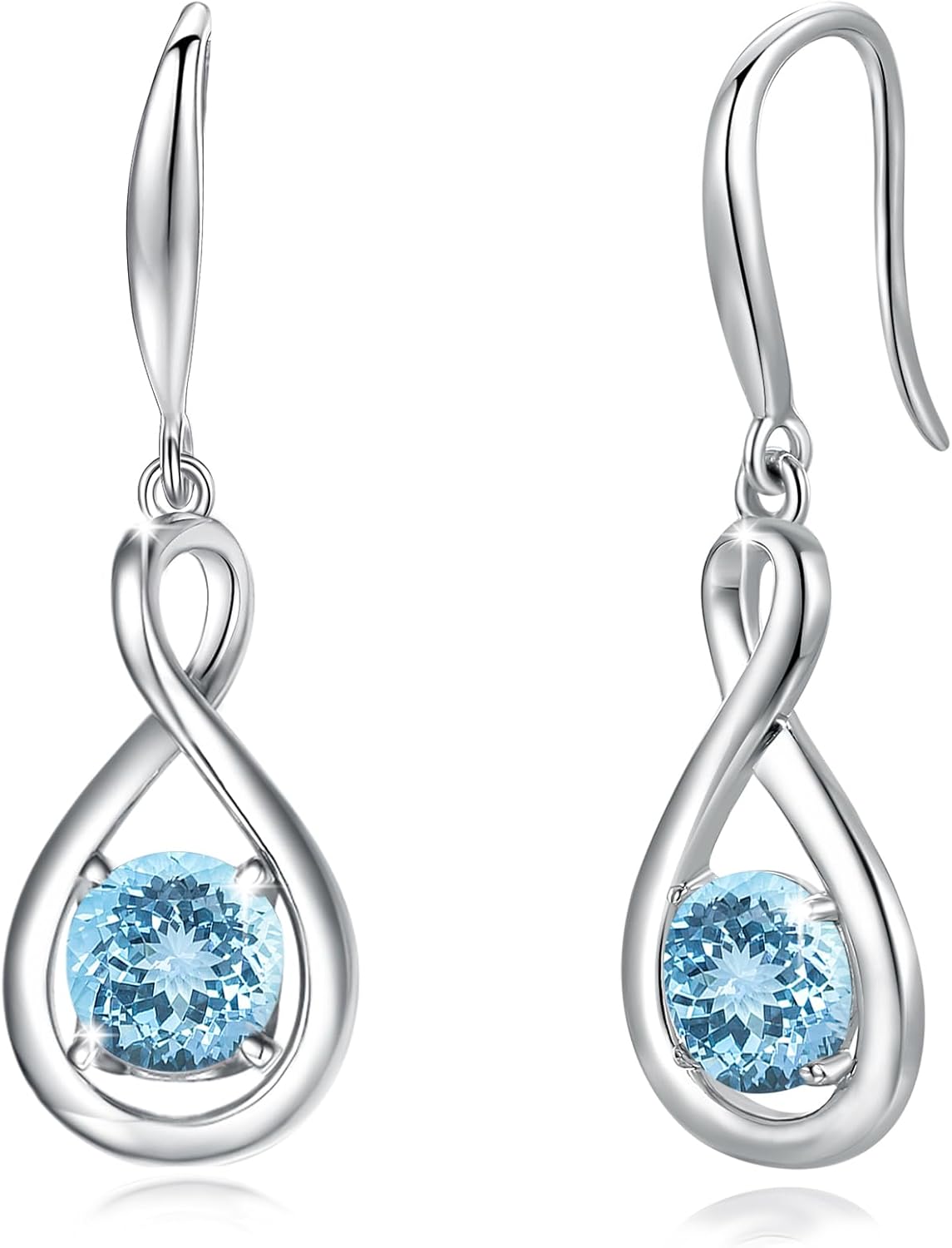 FANCIME Dangle Drop Earrings 925 Sterling Silver Dainty Infinity Round Gemstone Birthstone Jewelry Birthday Mothers Day Gifts for Her Women