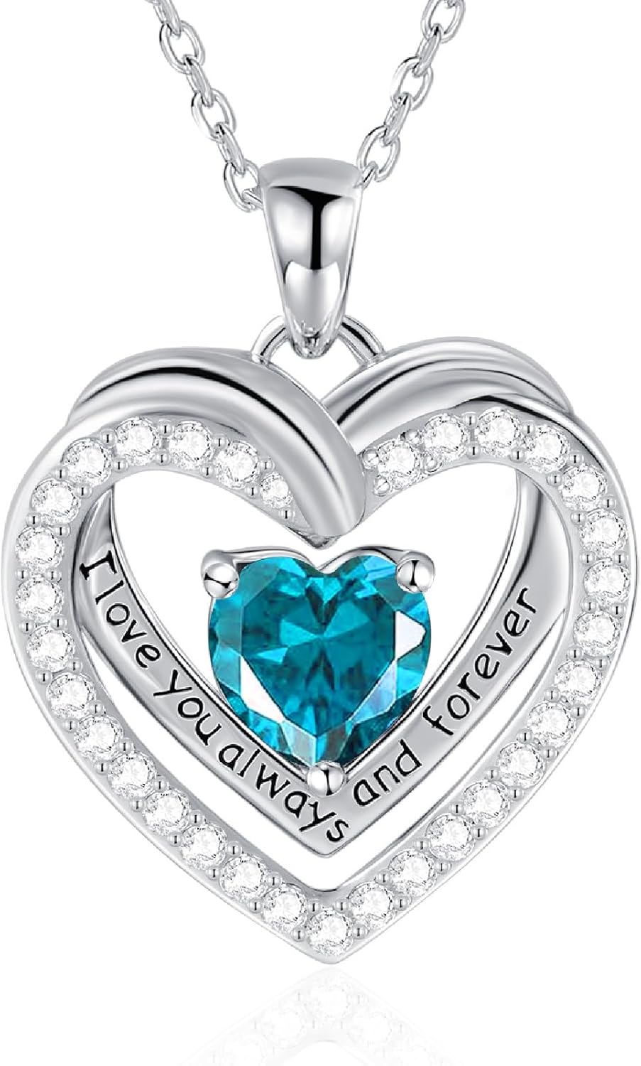 E Birthstone Necklace Sterling Silver Love Heart Necklace, Birthday Wedding Anniversary Mothers Day Jewelry Gifts for Wife Girlfriend Mom Women Her