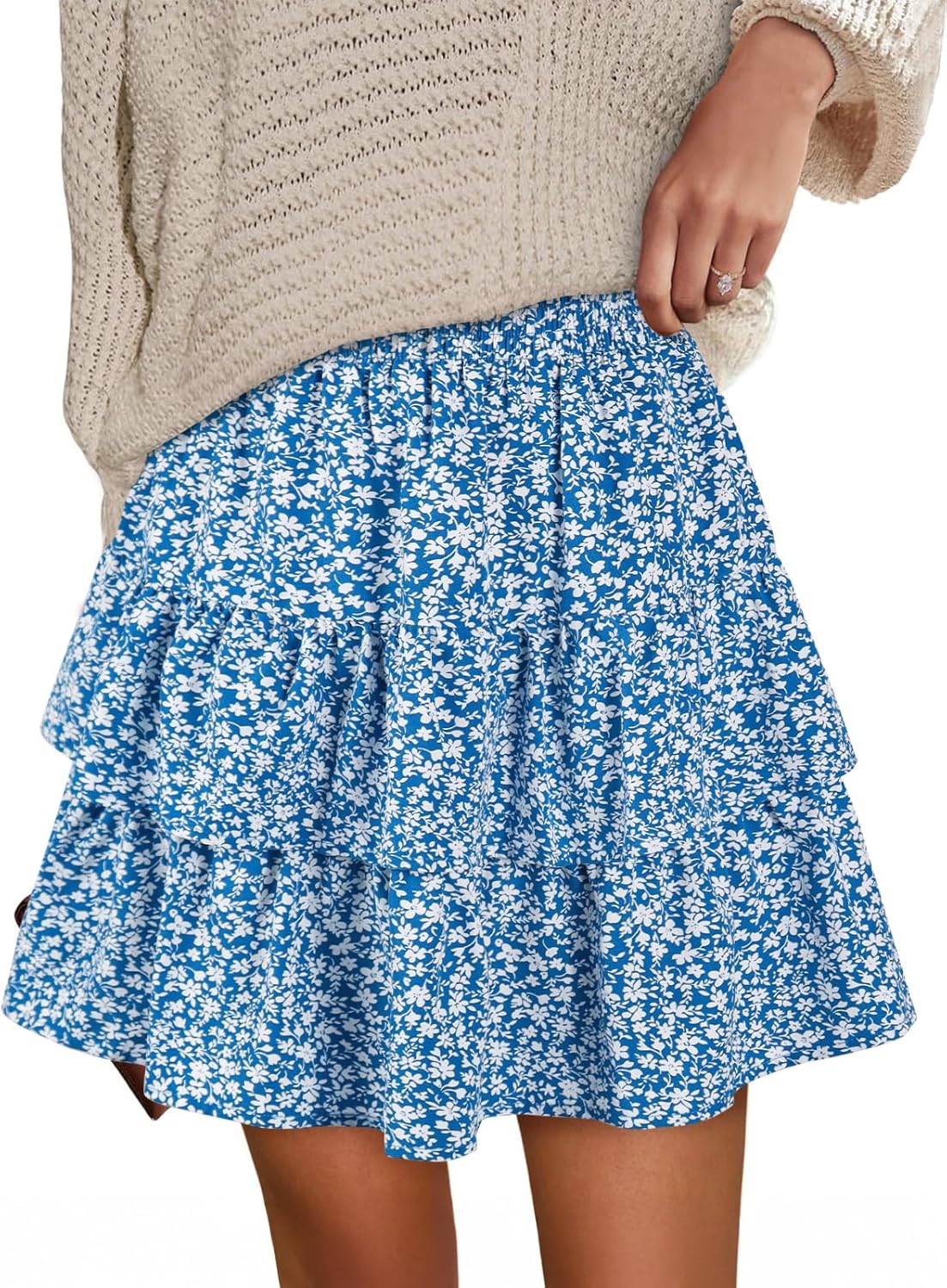 Berydress Ruffle Mini Skirts for Women 2025 High Waist Flowy Summer Vacation Casual Beach Boho Tiered Short Skirt