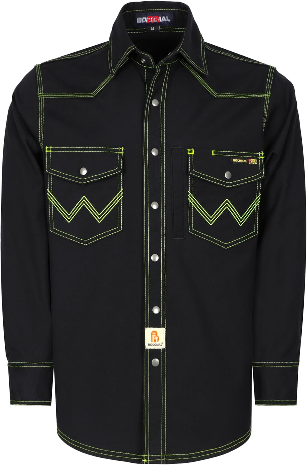 BOCOMAL FR Welding Shirts Heavyweight Stretch Canvas Snaps Down Reinforced Stitching Western Style Fire Resistant Jackets