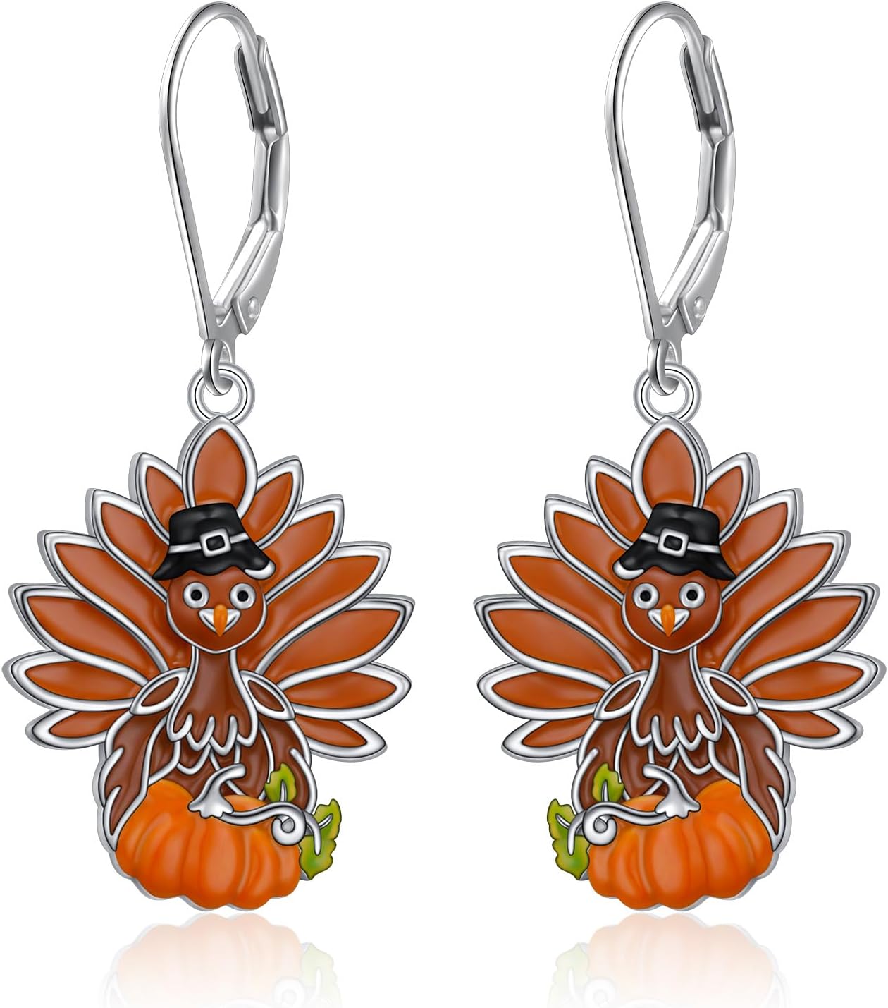 Thanksgiving Turkey Pumpkin Earrings for Women Sterling Silver Fall Christmas Dangle Earrings Holiday Jewelry Gift