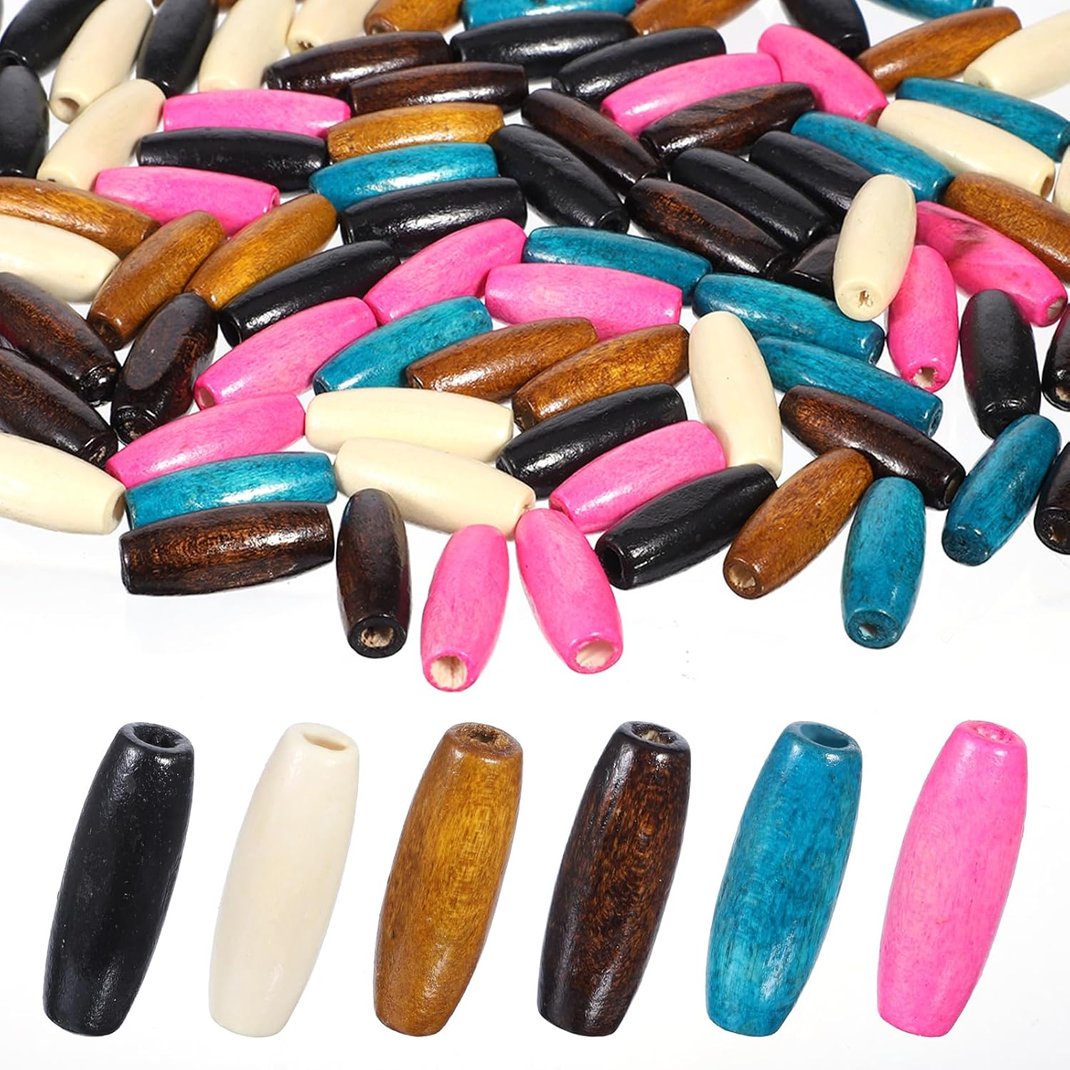 120 PCS Long Wooden Beads for Crafts, Large Hole Boho Beads for Hair, Colorful Wood Hair Bead, Wooden Spacer for Necklace Bracelet DIY Craft Home Decor
