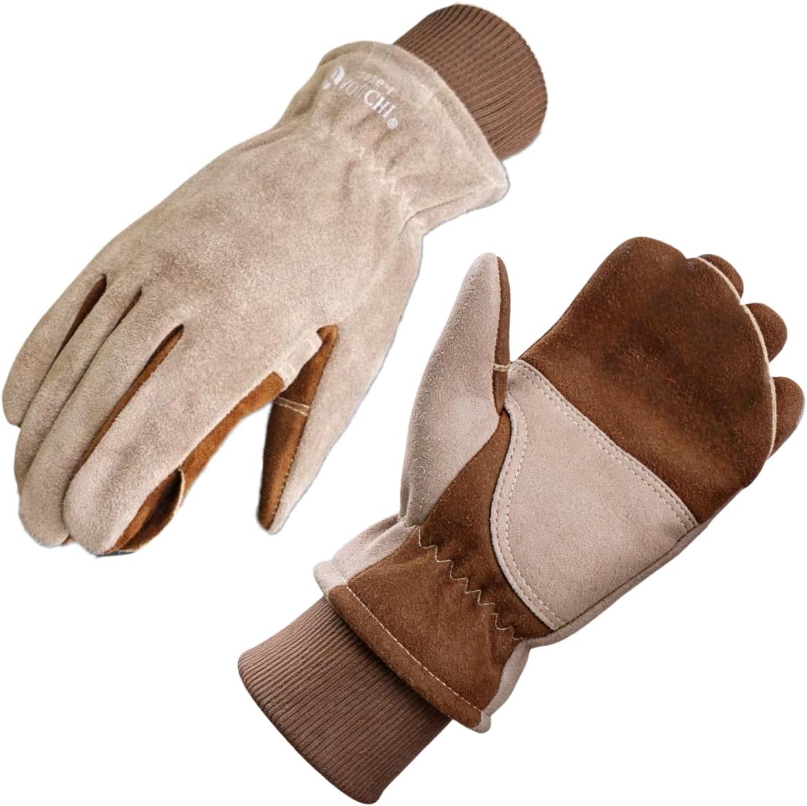 Winter Leather Work Gloves with Flexible Dual-Layer Palm for Men, Warmth, Puncture and Abrasion Resistant, Heat Resistant, Gardening, Welding, Construction, Cooking, Oven Mitts (Large)
