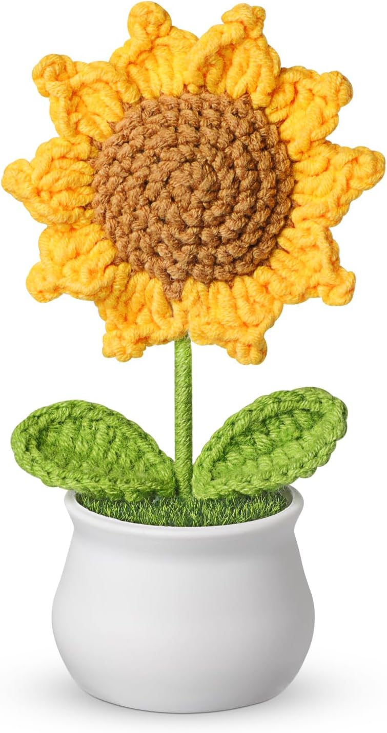 Crochet Flowers - Artificial Sunflower Giifts for Women - Handmade Knitted Flower for Car Dashboard Decor - Office Desk Home Decoration - Funny Gifts on Birthday Christmas