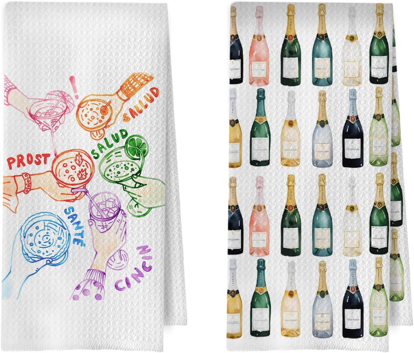 Champagne Cocktail Kitchen Towels - Champagne Gifts Dish Towels, Cocktail Lover Gift Decorative Waffle Hand Tea Towel, 16x24 Inches Set of 2