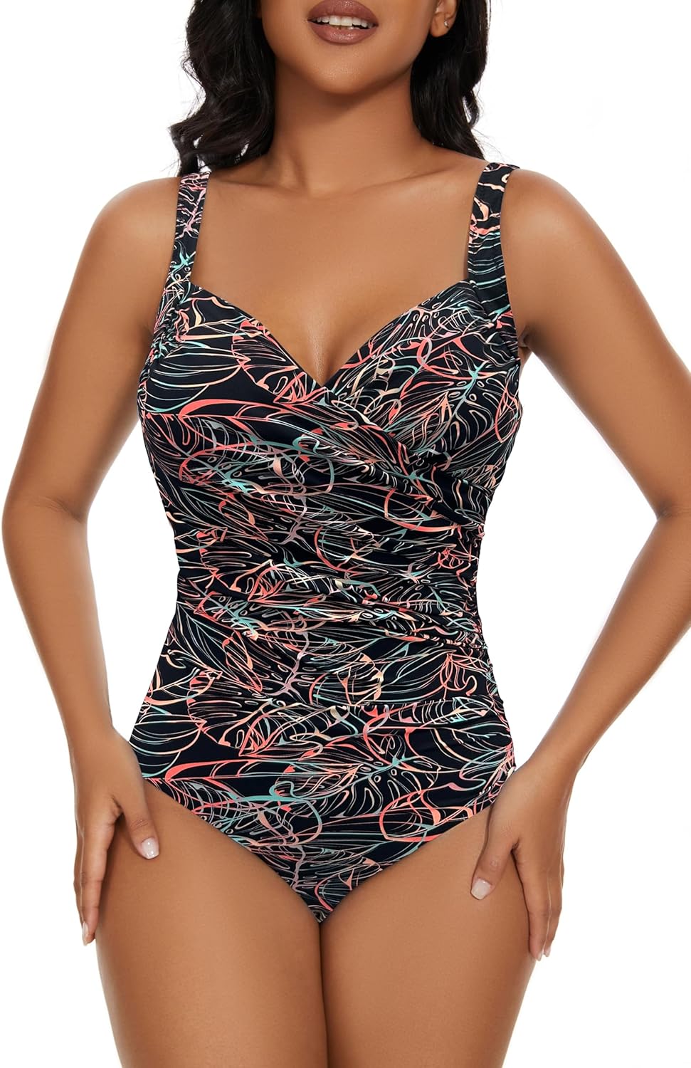 Aqua Regina Plus Size Swimsuit for Women One Piece Bathing Suit Ruched Tummy Control Adjustable Swimwear
