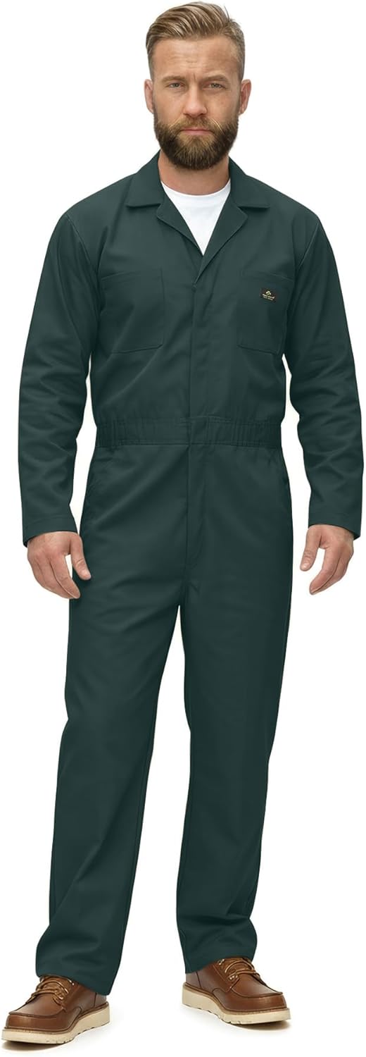 Natural Uniforms Mens Long Sleeve Zip Up Twill Coverall, Stain and Wrinkle Resistant