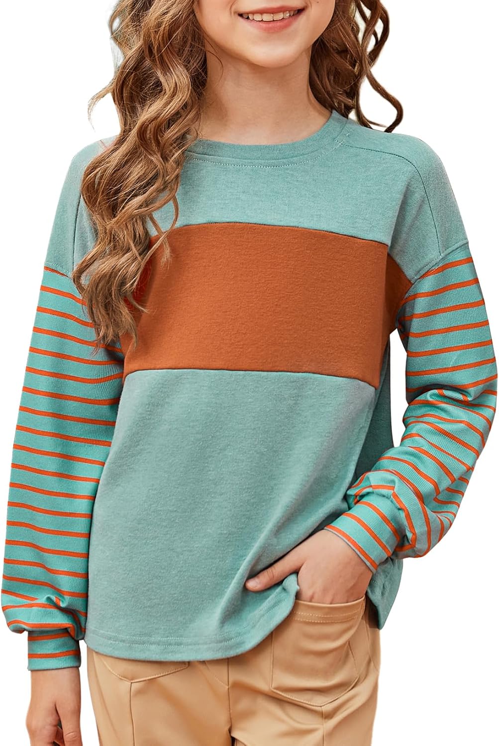 blibean Tween Girls Fall Long Sleeve Shirt Kid Color Block Tops Size 6-15 Years