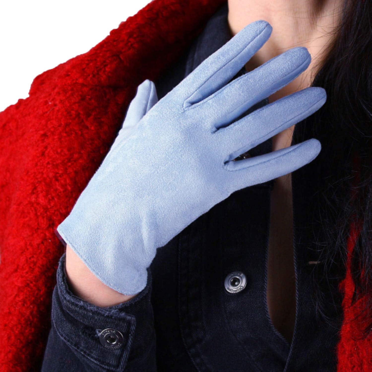 DooWay Short Fashion Suede Gloves Faux Leather Wrist Length Light Blue Stretchy Soft Winter Warm Opera Dress Driving Gloves