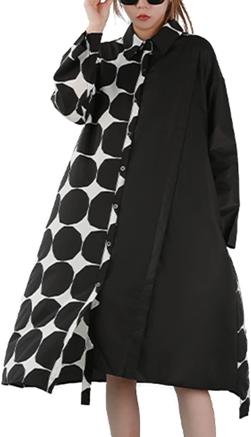 ellazhu Womens Fall Casual Patchwork Funky Long Sleeve Designer Dress Loose Blouse GY2787 A
