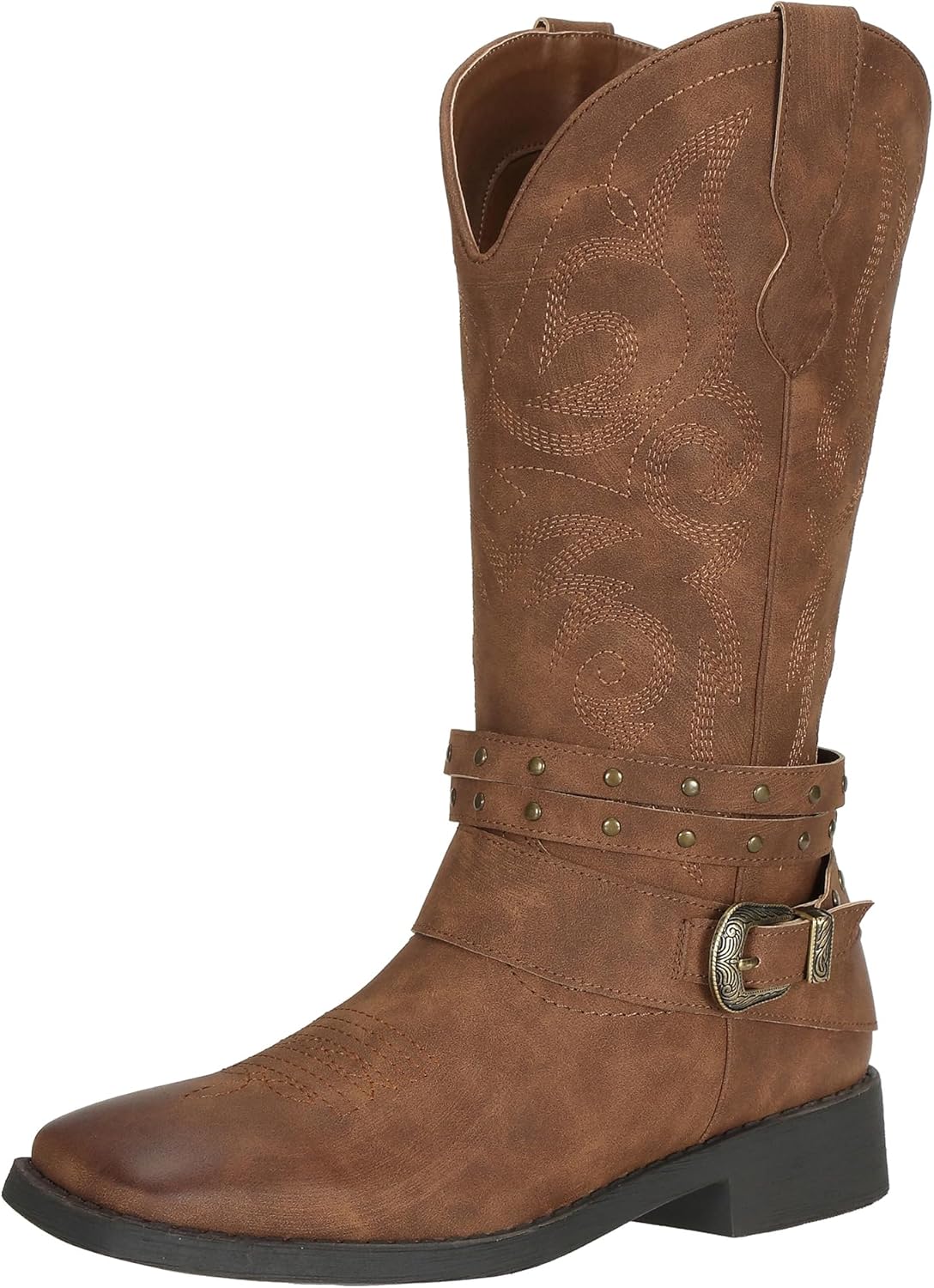 SheSole Womens Boots Cowboy Boots Women Square Toe Western Cowgirl Boots Wide Mid Calf with Buckles Pull On Dress Ladies Fashion Country Botte Cowboy Femme