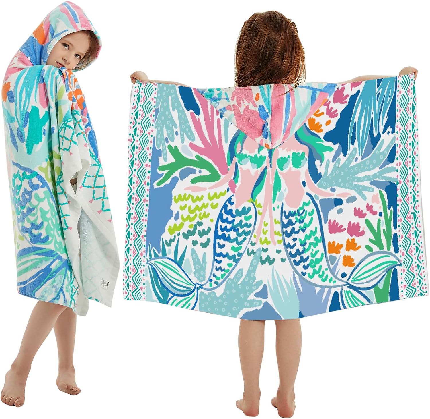 - ★UNIQUE & LOVELY DESIGN: Get this towel, Get summer. Our design concept is to spread joy through vibrant, colorful bath towels that transform bath time into a whimsical adventure. Featuring mermaid and unicorn patterns, these towels are not just for drying off but also for kindling the imagination. The adjustable two-buttons make the hooded towel wrap easy to wear and perfect for playful days at the beach or pool.