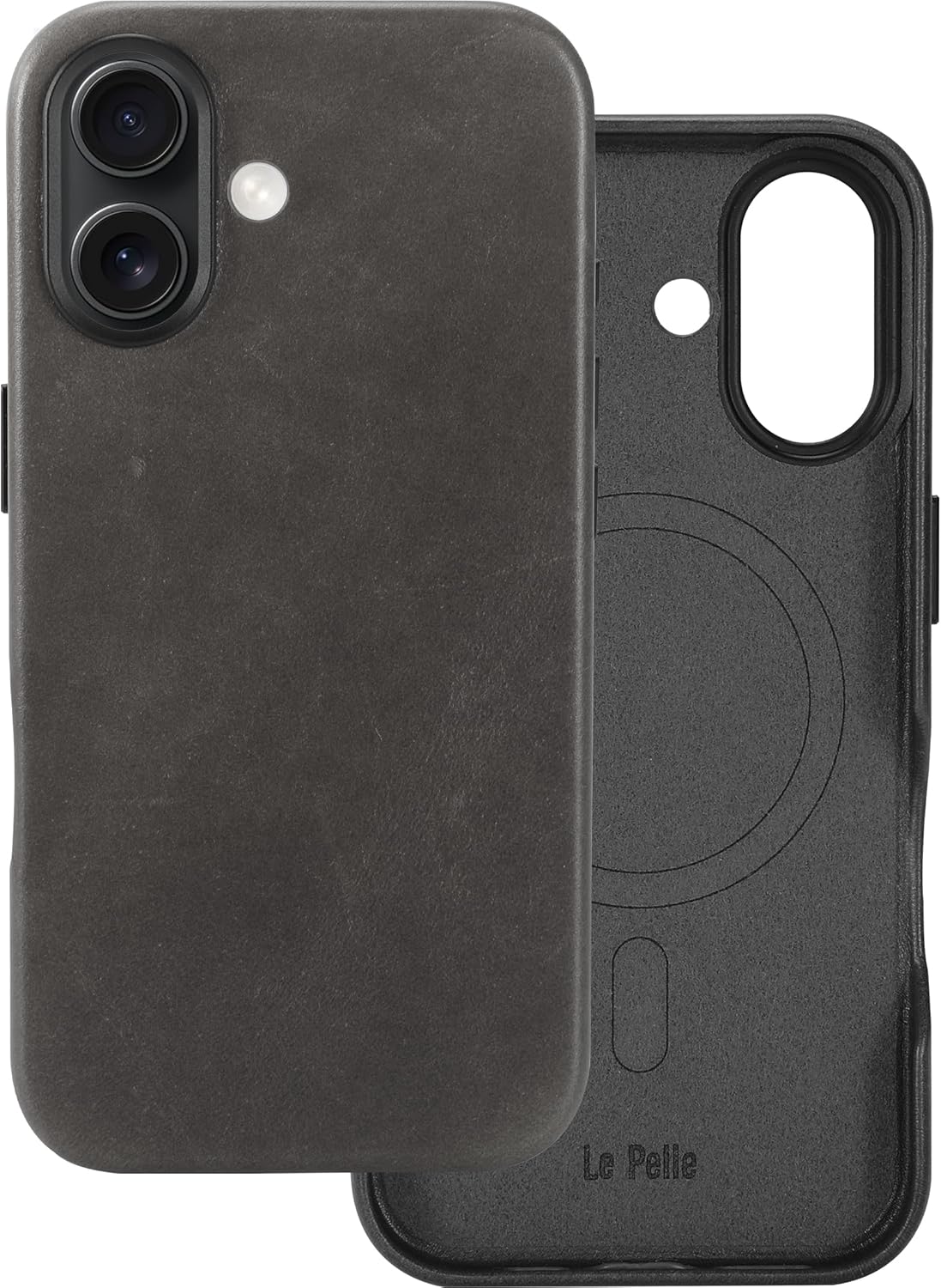 Italian Leather Case for iPhone 16 Plus Graphite Black | Handcrafted, Premium, Compatible with Magsafe, Two-Tone Effect, Unique Patina Over Time