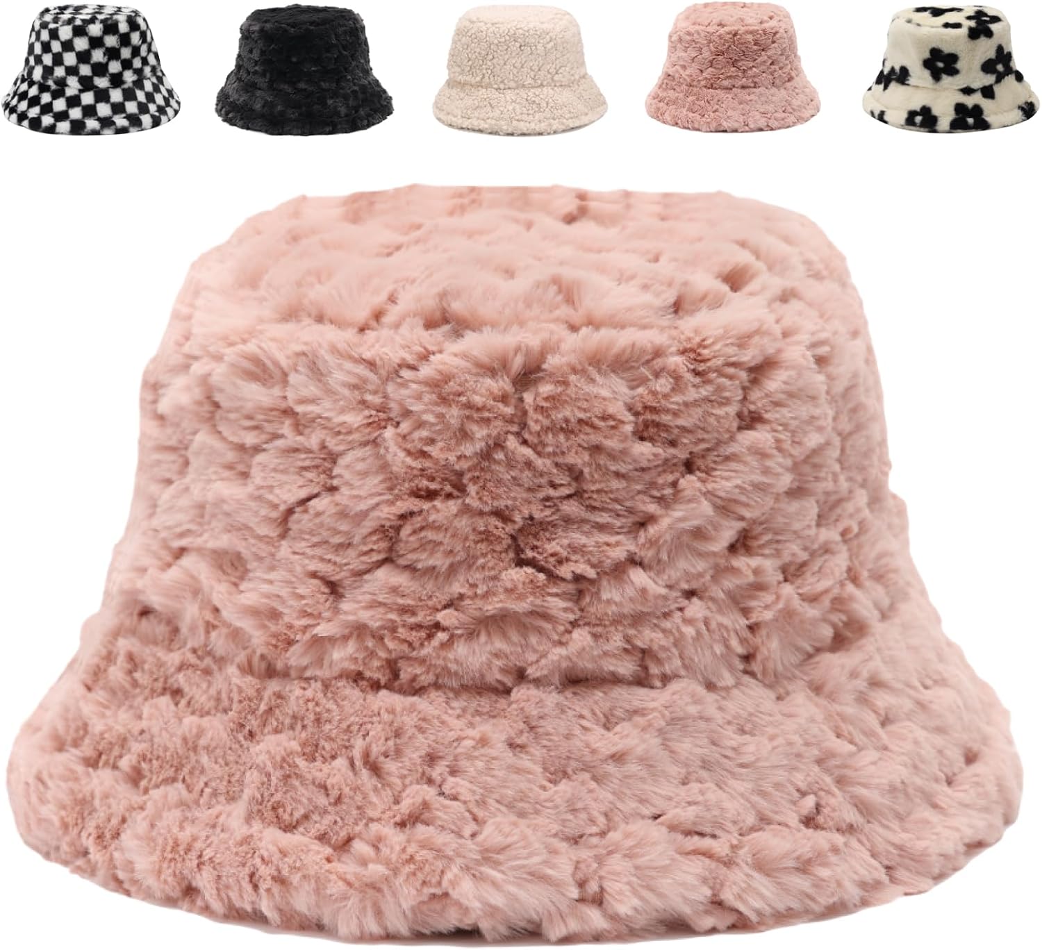 Bucket Hat Women Furry Fuzzy Bucket Hats for Ladies, Winter Warm Fluffy Plush Faux Fur Hat for Women