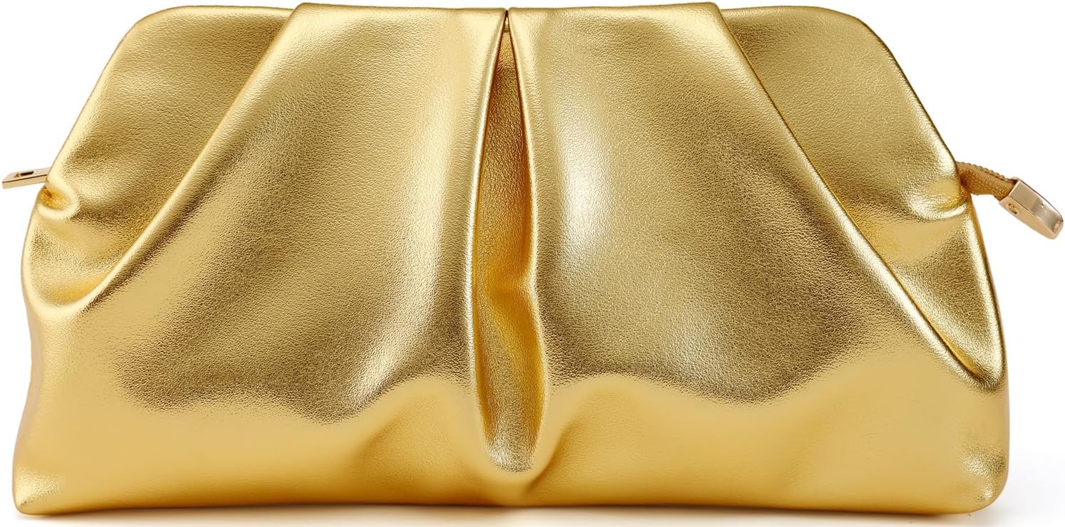 Women Clutch Bag Dressy Formal Handbag Pleated PU Clutch Purse Detachable Chain Crossbody Bag