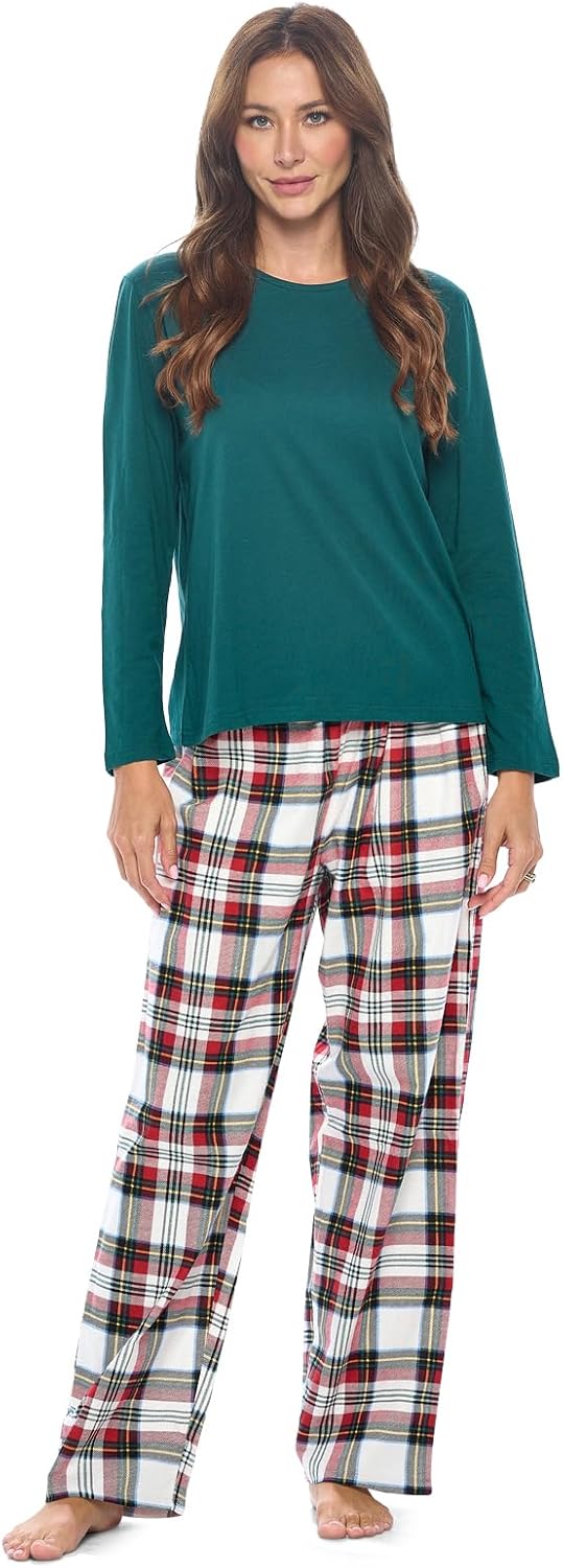 Casual Nights Women's Jersey Knit Long-Sleeve Top and Soft Flannel Bottom Pajama Set
