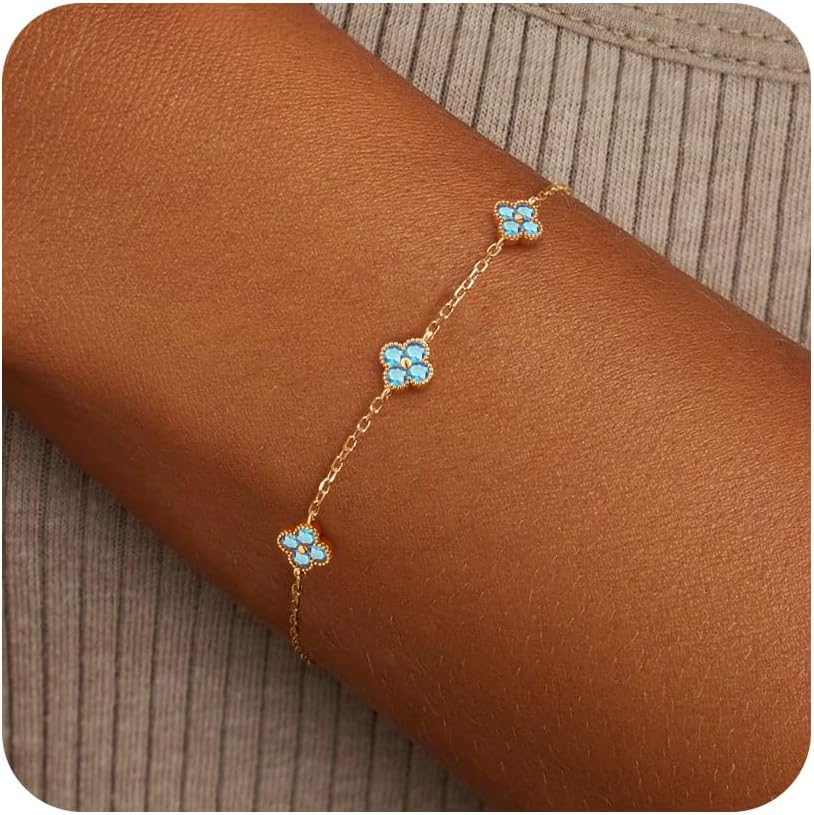 Birthstone Gold Clover Bracelet Dainty 14K Gold Plated Cute Friendship Stackable Bracelets for Women No Tarnish Trendy Charm Best Friend Bracelet Stack for Birthday Jewelry