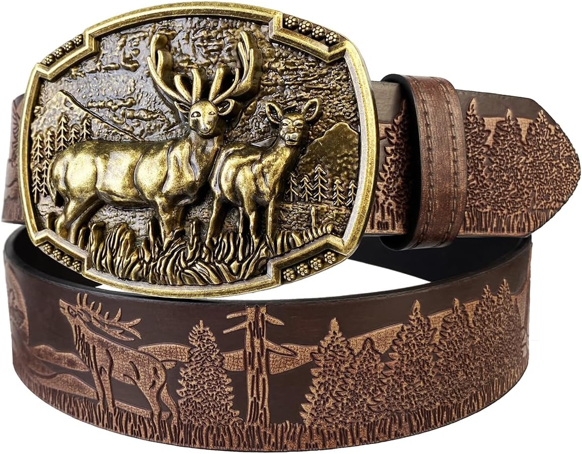 TOPACC Western Belts for Men Woman Western Belt Buckle Cowgirl Cowboy Leather Country Belt for Jeans Pants Gift