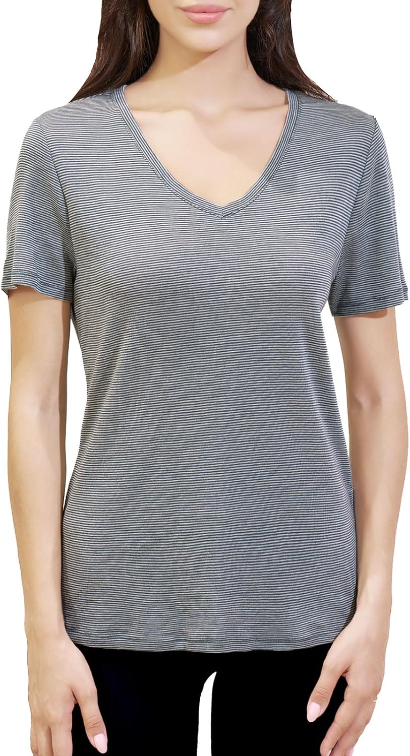 Merino Protect Base Layer Women Classic Strips Shirts Moisture-Wicking Tops for Travel Hiking