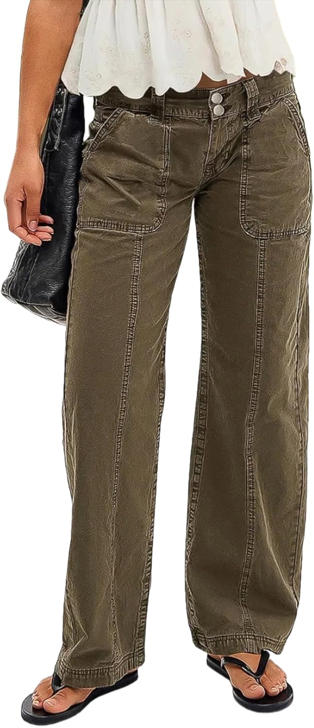 Flamingals Straight Leg Mid Waist Solid Stitch Detail Pants with Pocket