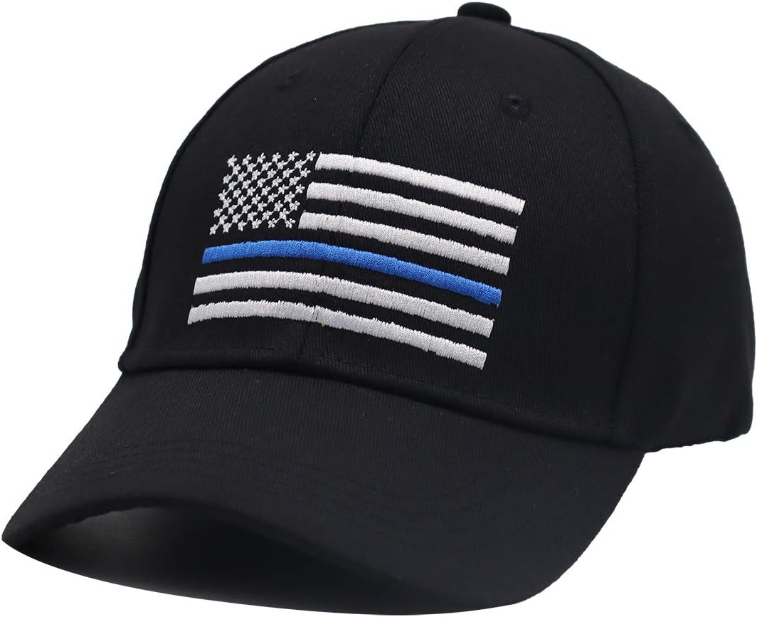 MANMESH HATT Embroidered USA American Flag Hat, Thin Blue Line Washed Cotton Adjustable Baseball Cap