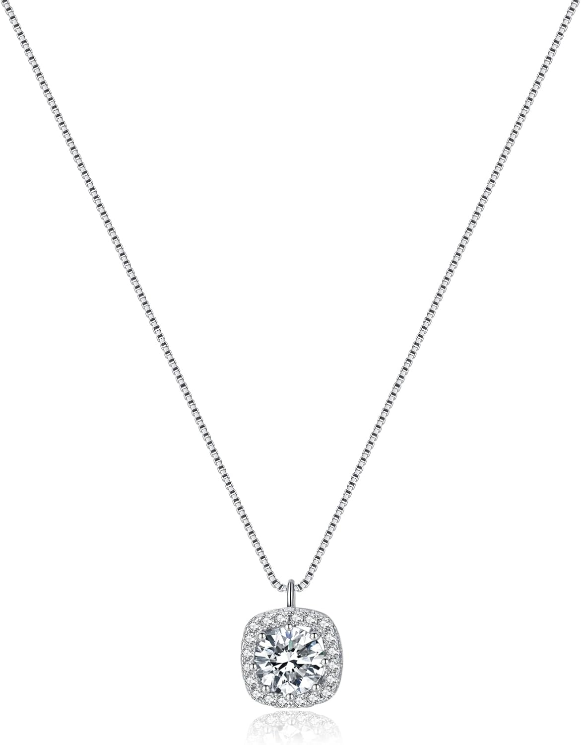 SLUYNZ Solid 925 Sterling Silver CZ Chain Choker Necklace for Women Teens Diamond Square Pendant Necklace
