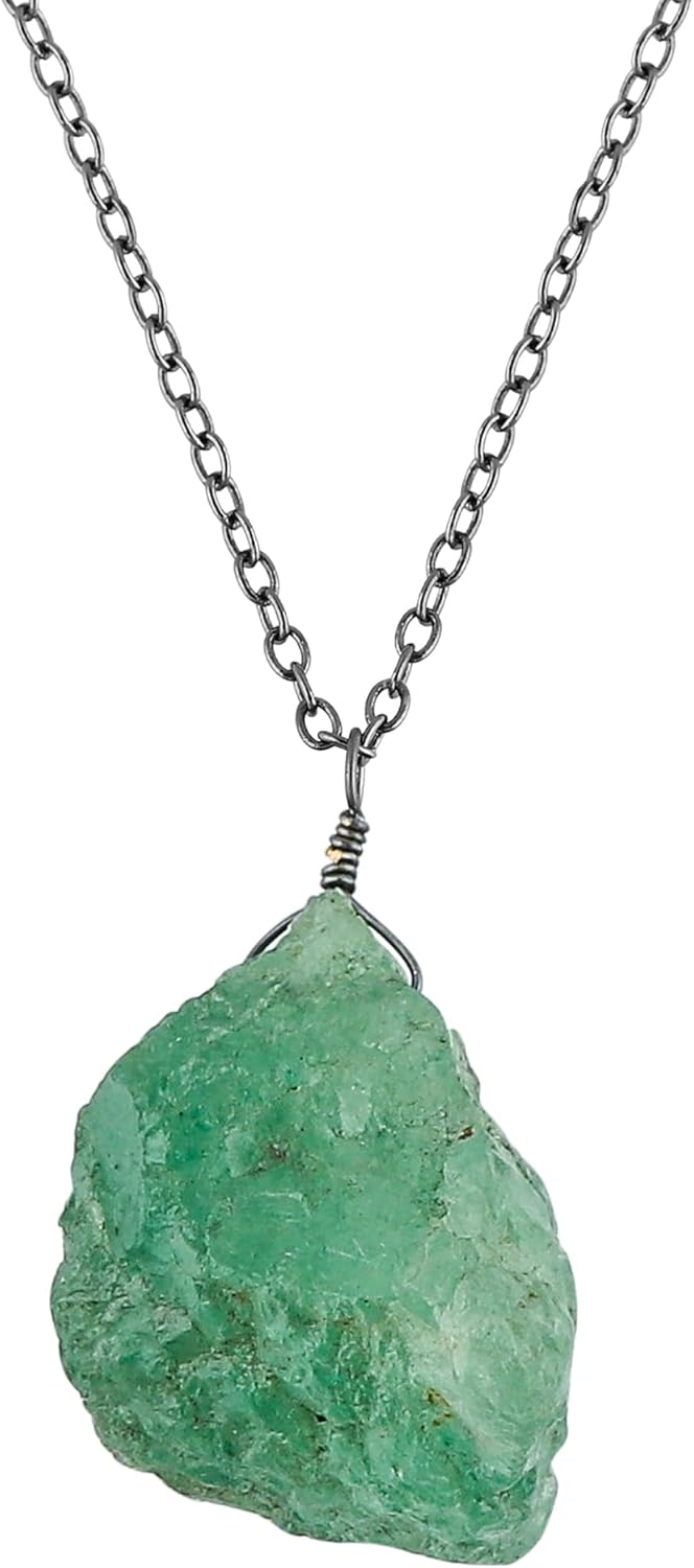 Raw Gemstone Pendant Necklace for Women |Natural Healing Crystal Rough Pendant 15–25 Carat | 8–14 mm Stone |Black Plated Chain 16+2 Inch Adjustable | Gift Jewelry