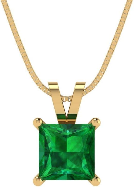 Clara Pucci 14K Yellow Gold Plated Solitaire 18" Box-Chain Necklace - Sterling Silver 3ct Princess Cut Emerald Pendant