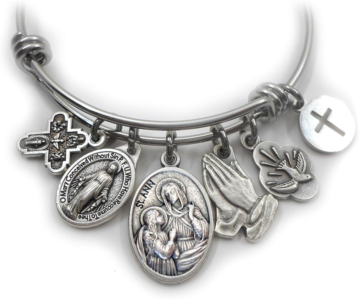 St. Ann Bangle Bracelet, Patron Saint Anne Confirmation Gift