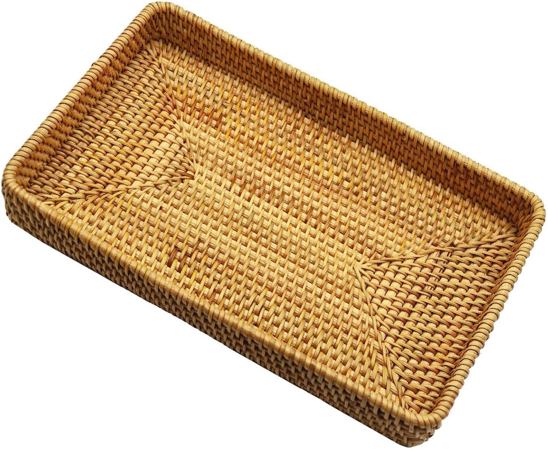 RT&BS Rattan Tray Rectangle, Large Rattan Tray, Natural Rattan Serving Trays, Bathroom Decor Trays, Handwoven Serving Baskets for Breakfast, Drinks, Snacks, Fruits (Large)