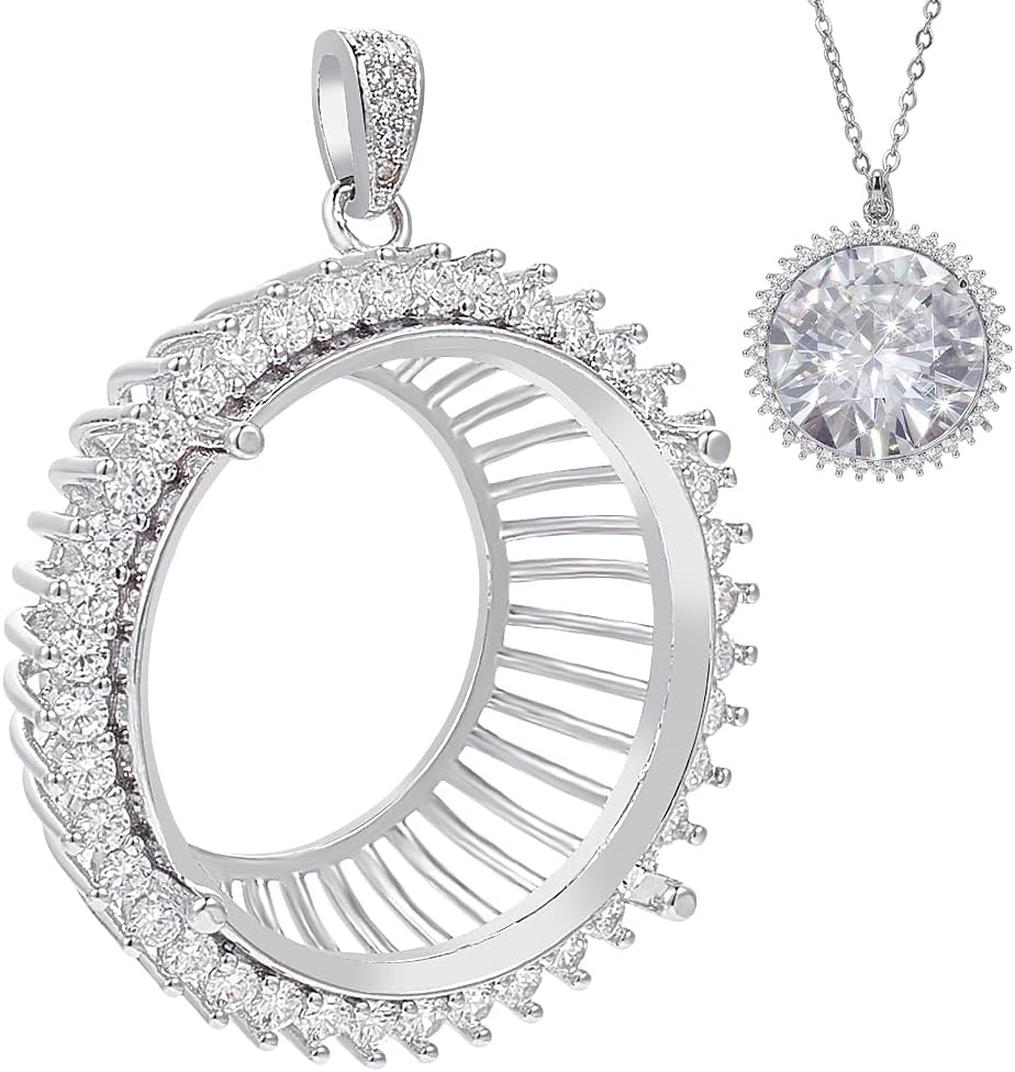BENECREAT 925 Sterling Silver Rhinestone Bezel Pendant Trays Blanks, Open Back Round Base Pendant Charm, Cabochon Setting with Polishing Cloth for DIY Necklace Jewelry Making
