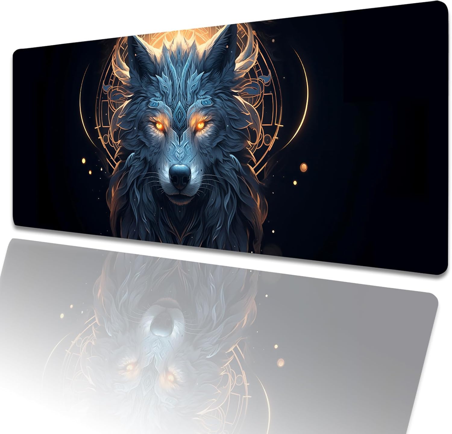 Wolf Gaming Mouse Pad 31.5x11.8in,Science Fiction Wolves Large Extended Desk Mat with Non-Slip Rubber Base,Big Mousepad for Laptop Computer PC,for Gamer Office Home Decor,Deskmat Gifts