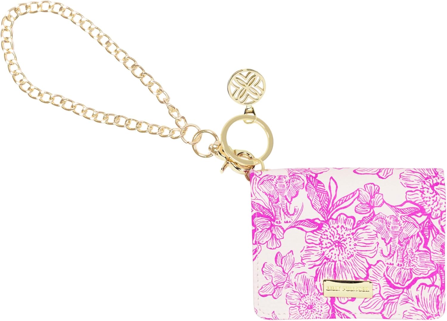 Lilly Pulitzer Snap ID Card Case, Cute Keychain Wallet, Slim Credit Card Holder with Gold Chain Wristlet Strap (Unforgettable Pink)