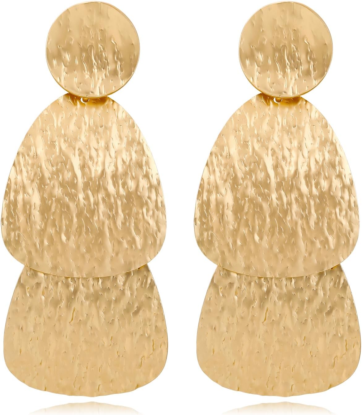 Gold Earrings for Women 14k Gold Plated Lightweight Dangle Earrings Hammered Disc Drop Geometric Hypoallergenic Earrings for Her
