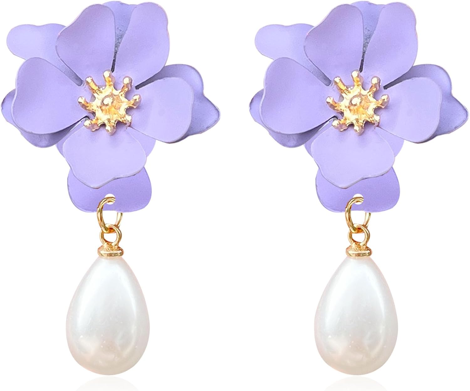 Pearl Bohemian Flower Earrings Floral Petal Flower Stud Earrings Jewelry for Women