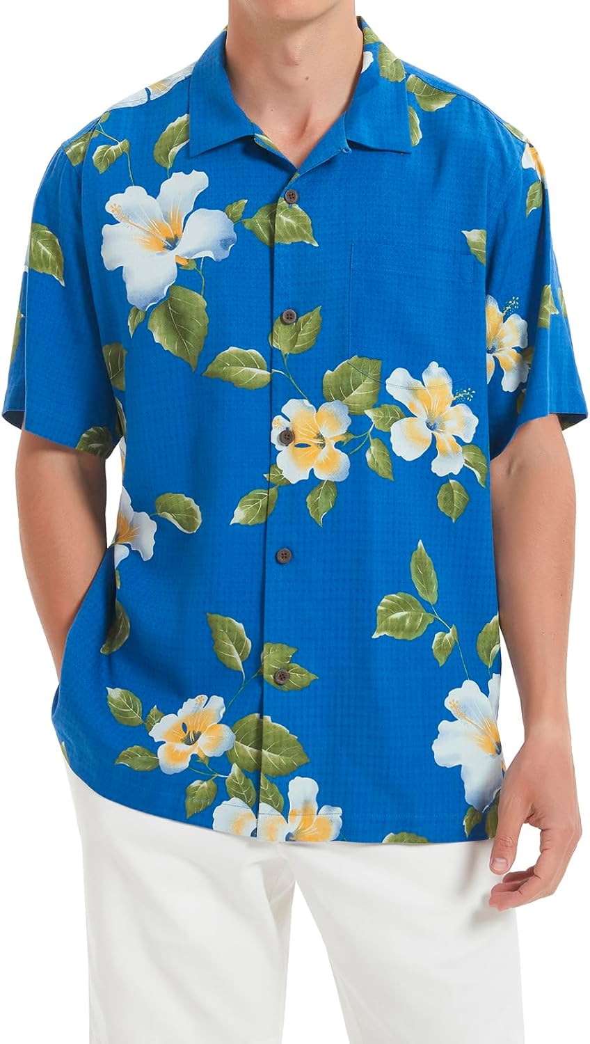 Men's Hawaiian Floral Shirts Silk Short Sleeve Button Down Casual Tropical Beach Holiday Shirts