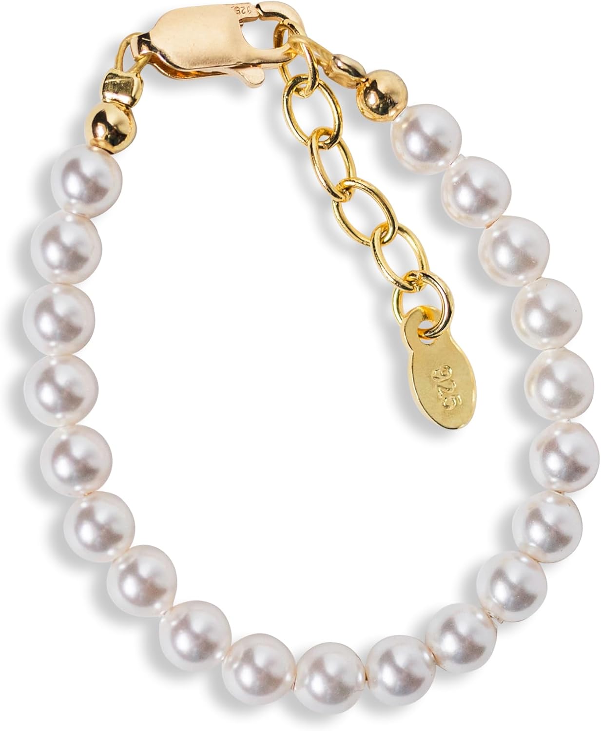 Cherished Moments 14K Gold-Plated Bracelet for Babies, Toddlers, Kids, and Little Girls with Simulated Pearls Gift for Baby Shower, Flower Girl, or Granddaughter