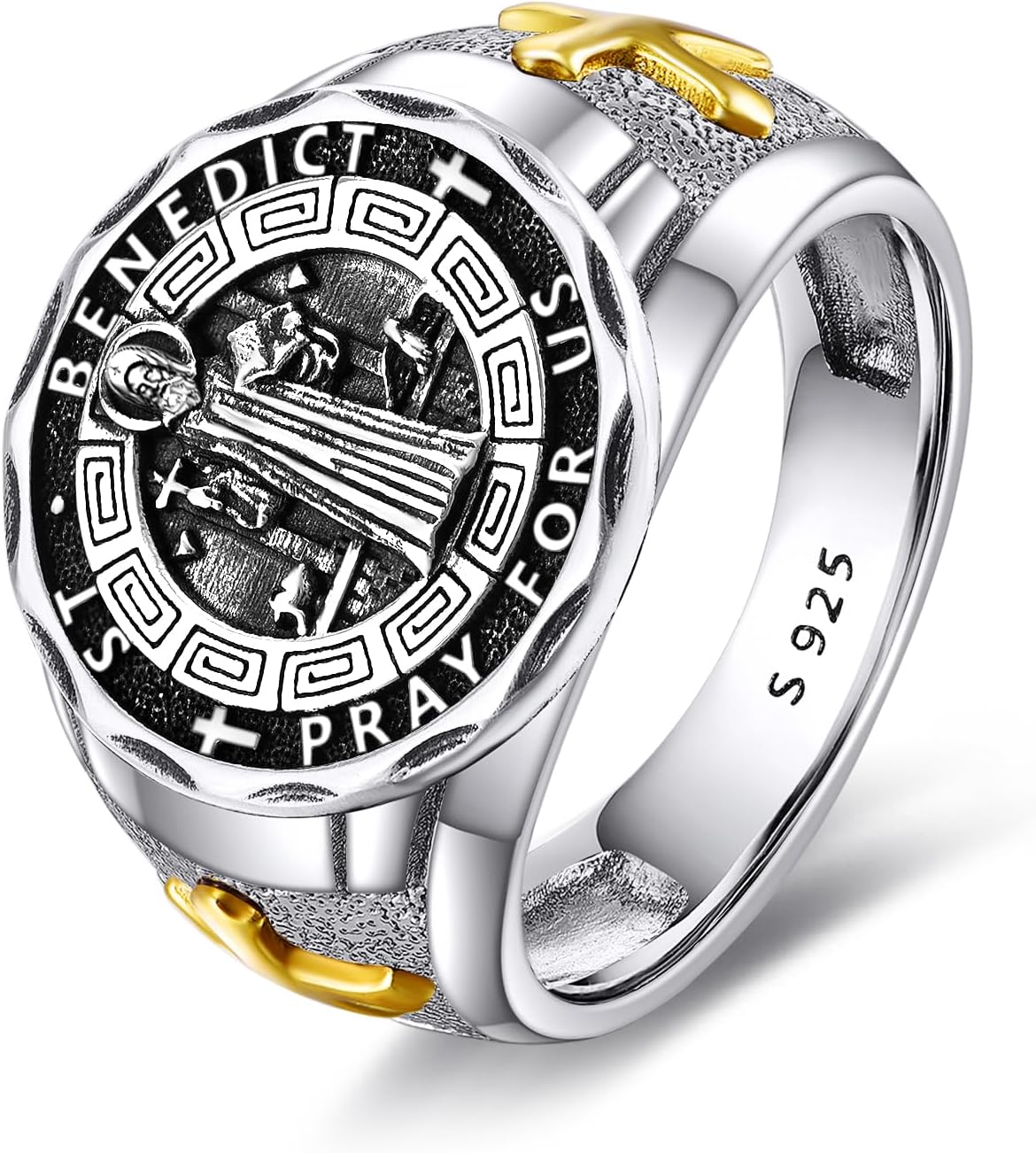 YFN Saint Benedict Ring Sterling Silver Religious Protector Ring St Benedict Jewelry Gifts for Women Men (St Benedict, 8)
